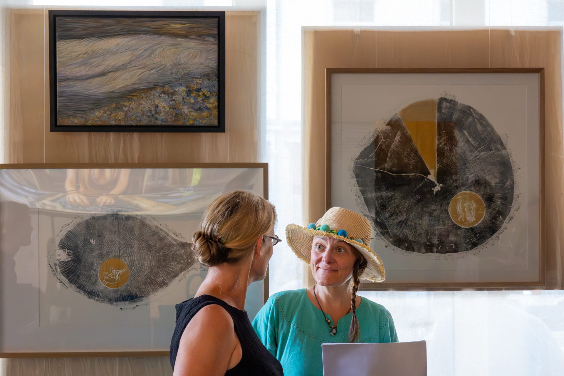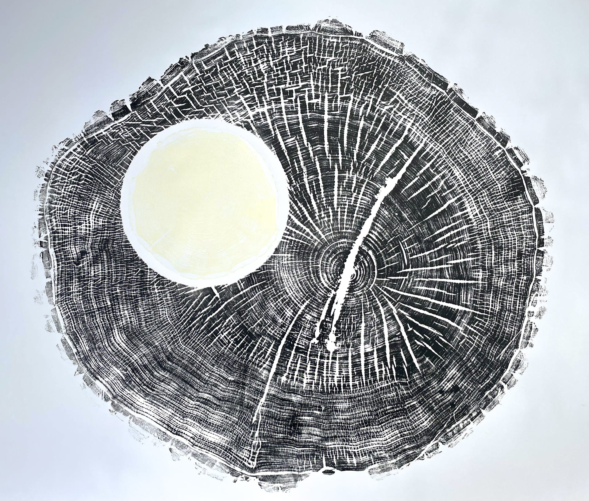 Hohaus greift in ihren neuen Arbeiten die Formen von Baumscheiben auf, um Einblick in das Innere dieser lebenden Zeugen der Zeit zu geben. Ringe, Risse und Verläufe werden zum Symbol für Wachstum, Wandel und Erneuerung – für Zyklen, für Kontinuität, für Brüche und Neuanfänge. Auch einige der für die Künstlerin bekannten „Grasbilder“ werden Teil dieser Präsentation sein.
